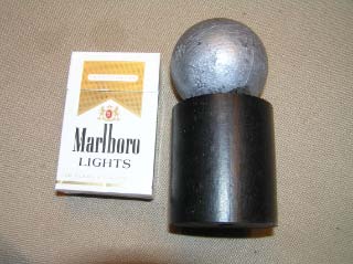 Oh, yeah, the cannon. You knew this would get interesting. This is a muzzleloading, black powder cannon with a 2.5-inch bore. The service load is a 44-ounce lead ball pushed by two ounces of cannon-grade black powder. I've chronogaphed these balls out of the cannon at about 1400 FPS. Actually, all cannon loads seem to drive their projectiles about 1400 (and smoke up the sensors of your chronograph sky screens pretty bad, too).